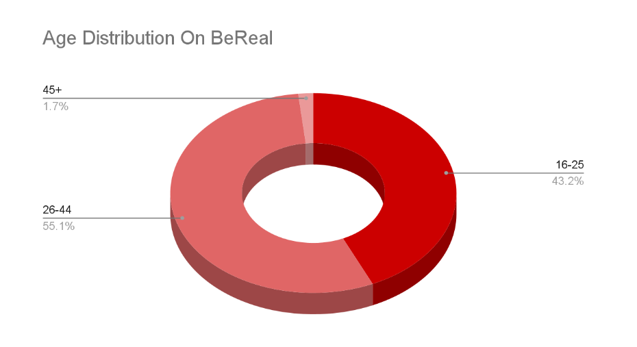 - 26-44 are the height age users of BeReal (55.1%).