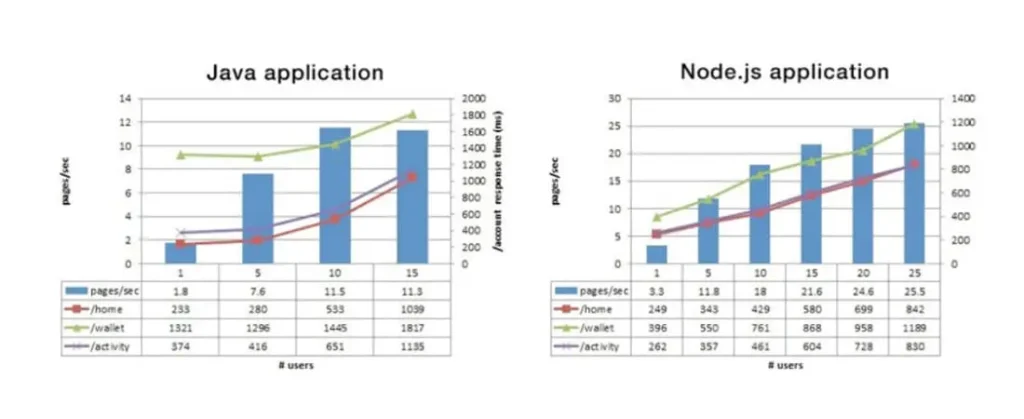 It’s a great story in and of itself how PayPal moved from Java to Node.js and achieved a 100% increase in business availability despite a heavy load. After using Node.js in its back end, PayPal experienced a 35% decrease in average page response time and a 200ms reduction in startup time.